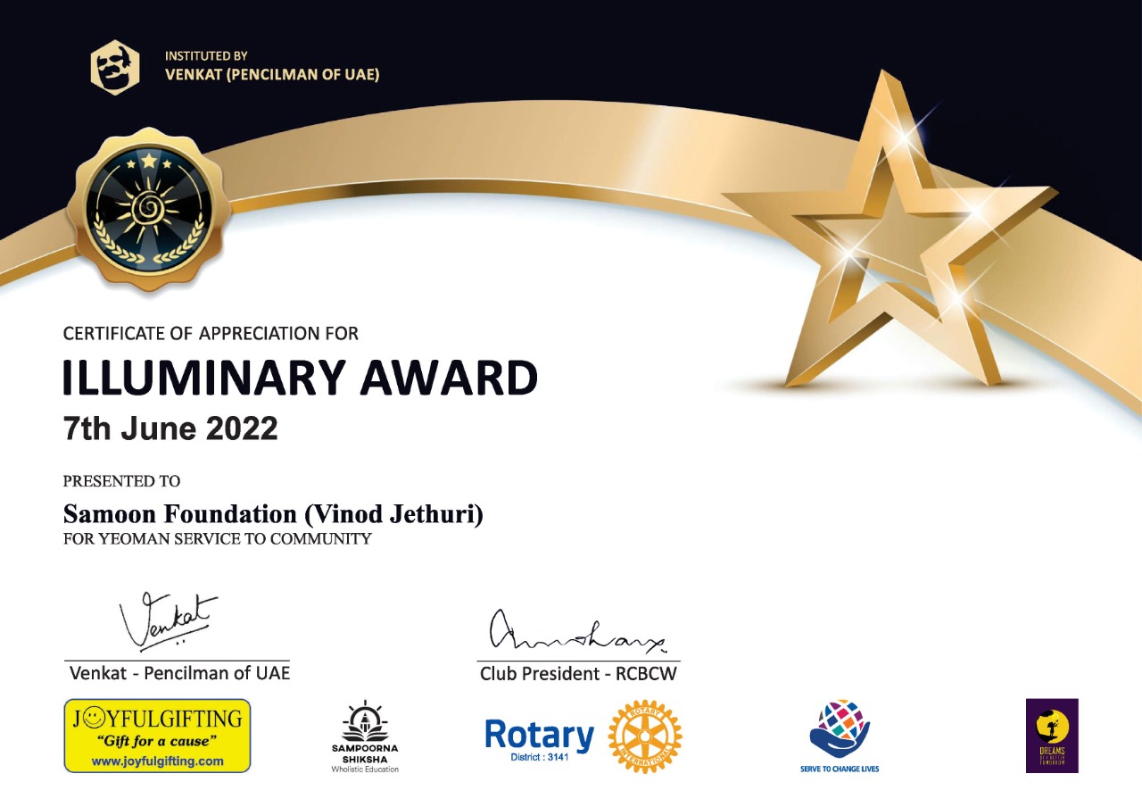 ILLUMINARY AWARD OF 2022 FROM ROTARY CLUB MUMBAI,