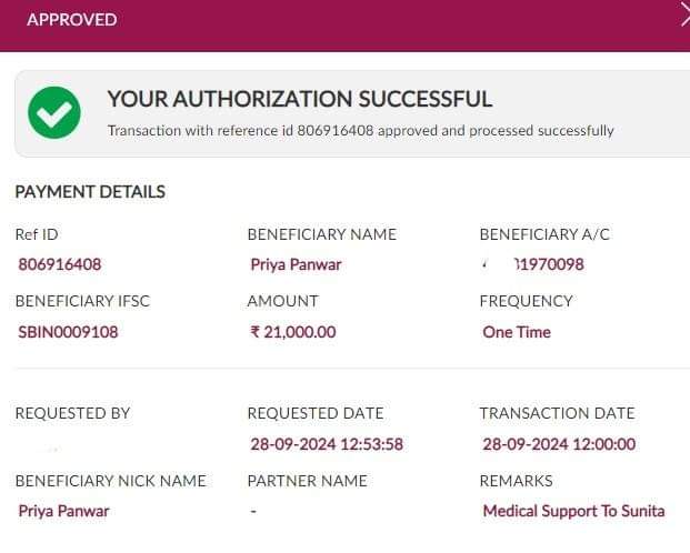 Donate generously and be a ray of hope for Sunita and her family during this dark time.