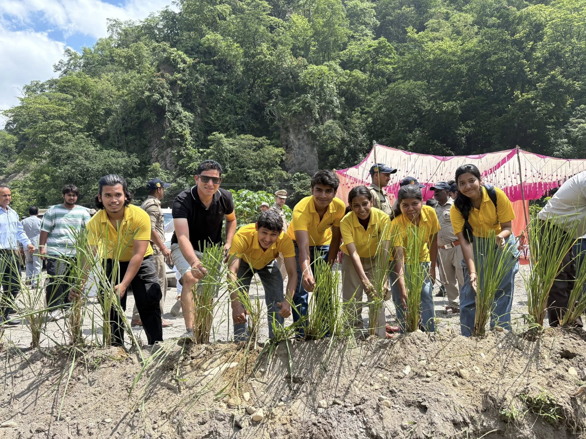 The plantation event was held in collaboration with the Forest Department, school students, local residents, and district officials.