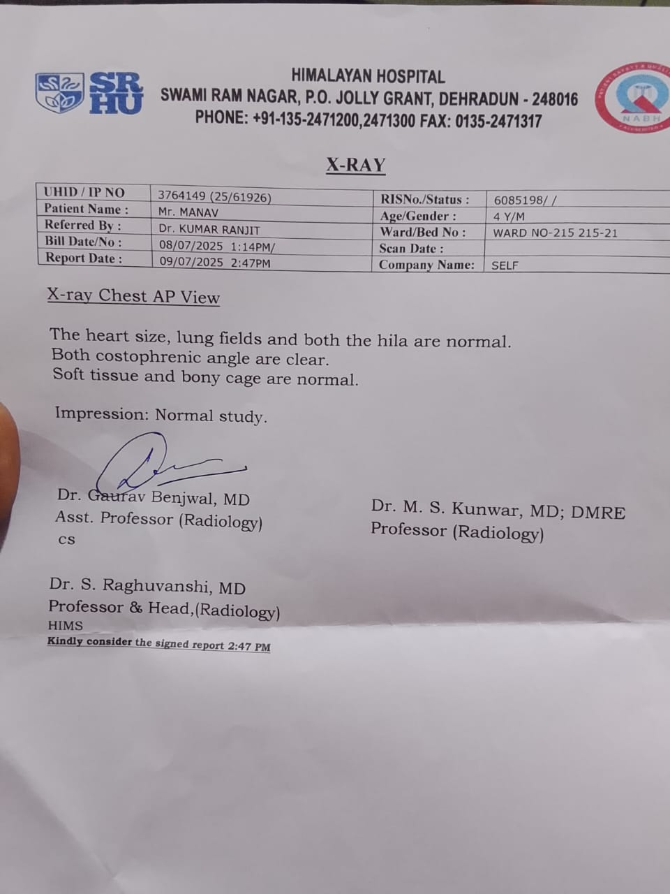 To make matters worse, Manav currently does not have an Aadhaar card, which means the family is unable to access benefits under the Ayushman Bharat health scheme. His condition has now worsened — on the morning of 11th July 2025, Manav's condition declined rapidly, and he had to be rushed to the ICU, where he is now in a coma. As he is unconscious, biometric verification for Aadhaar or Ayushman enrollment is not possible at the moment.